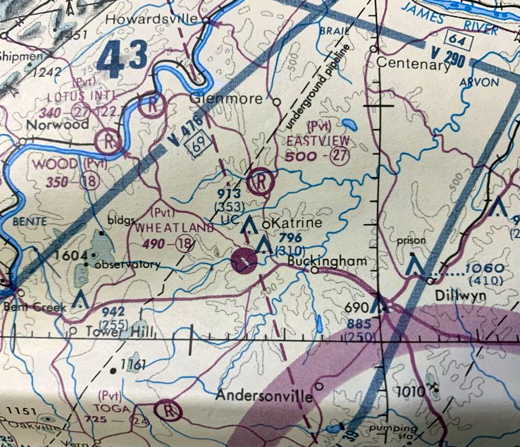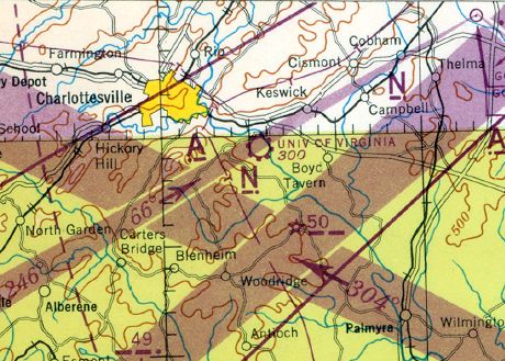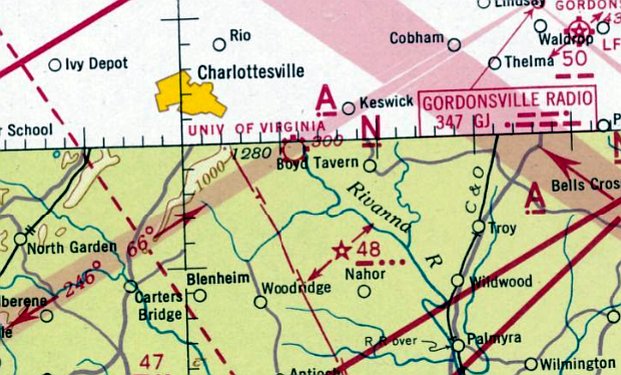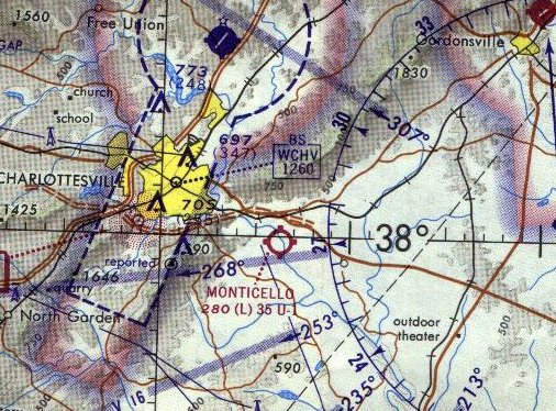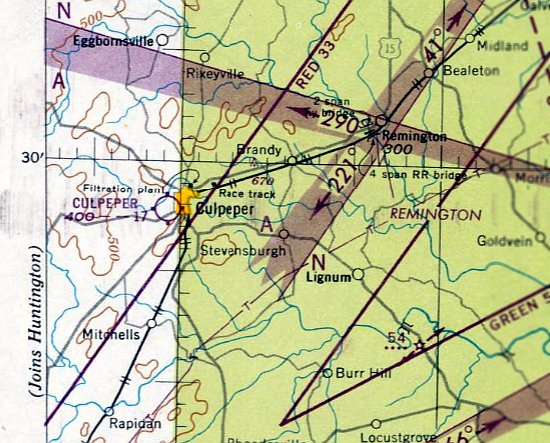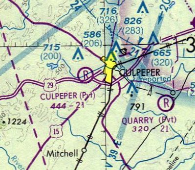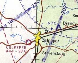 The last aeronautical chart depiction which has been located of the original Culpeper Airport