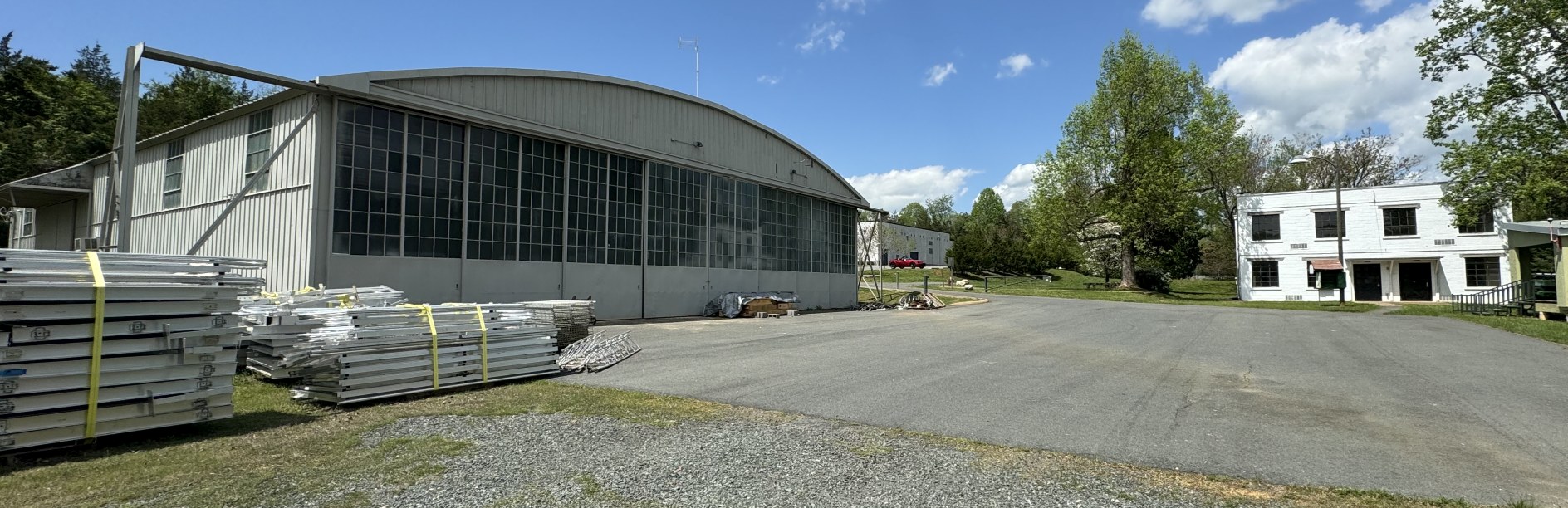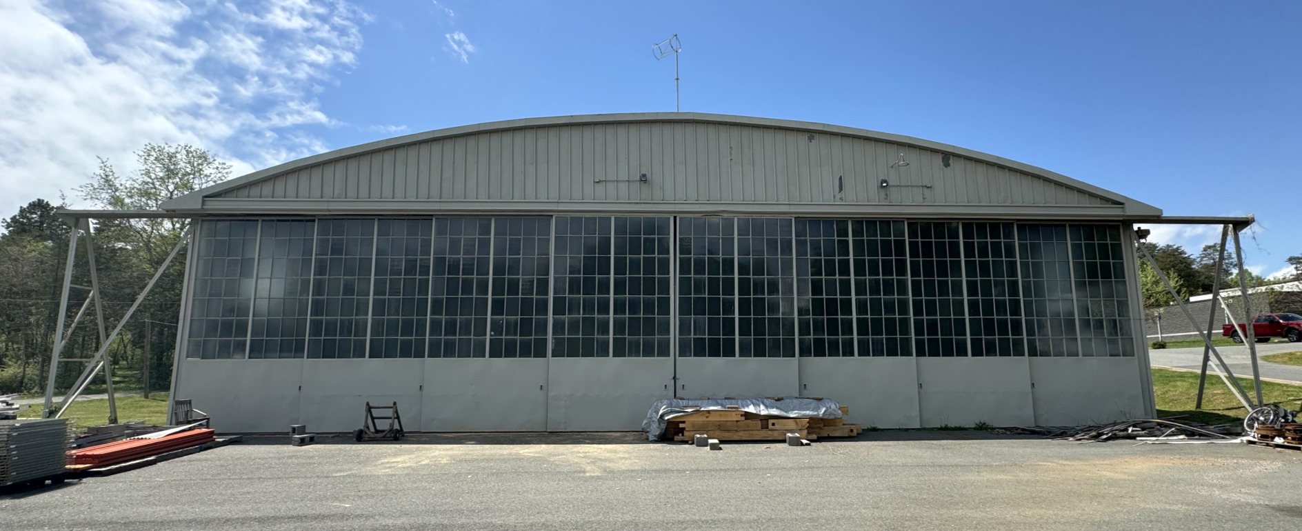A 4/20/24 photo by Paul Freeman looking west at the former Milton Field hangar.