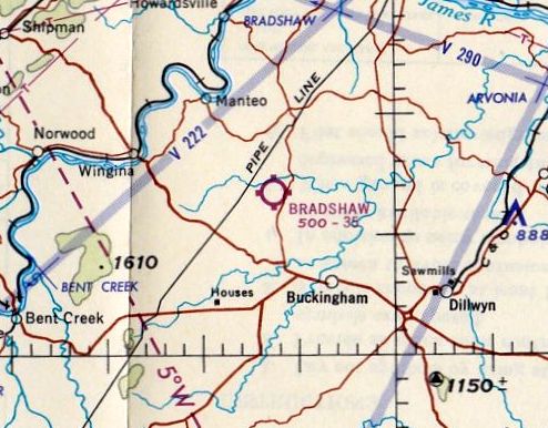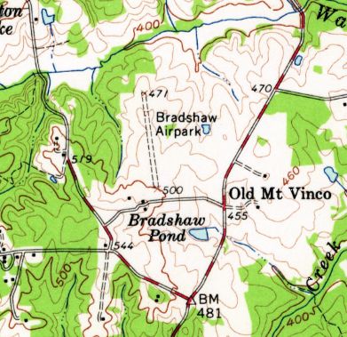 The 1965 Winston-Salem Sectional Chart depicted Bradshaw as having a 3,500' unpaved runway.