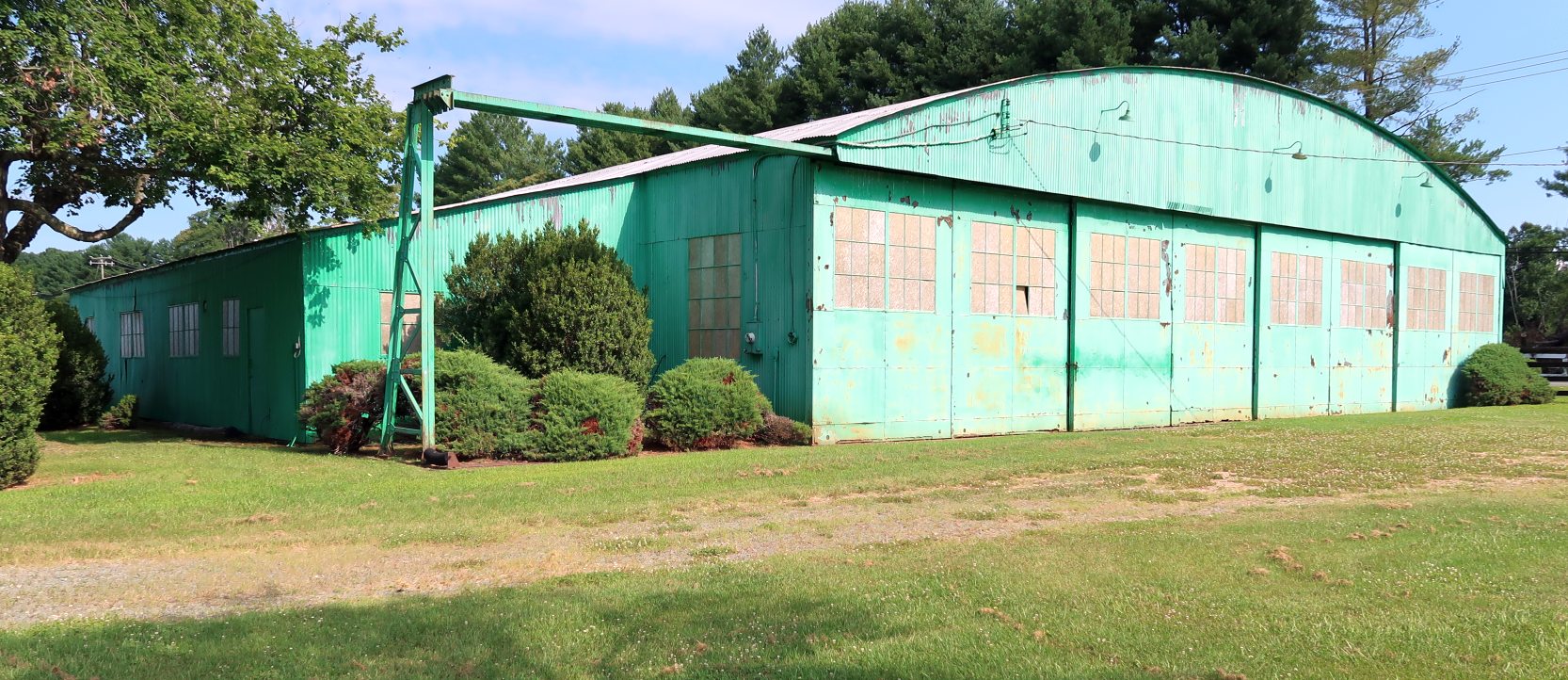 A 4/20/24 photo by Paul Freeman looking southwest at the former Milton Field hangar, also showing the site of the former smaller hangar to the left.