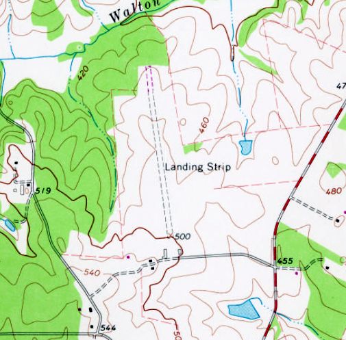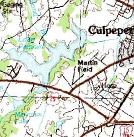 The 2 runways of the old Culpeper Airport were still depicted on the 1984 USGS topo map, but it was erroneously labeled "Martin Field".
