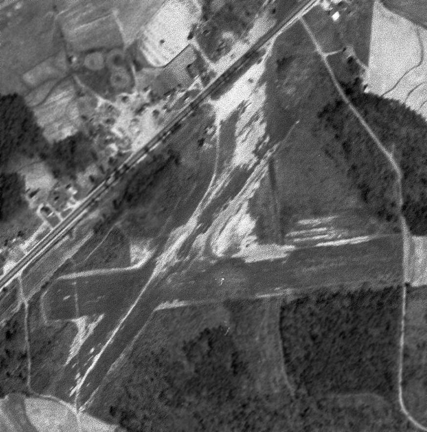 A 2/25/59 USGS aerial view showed the original Culpeper Airport to have 2 grass runways, with a building & 3 single-engine planes at the southeast end.