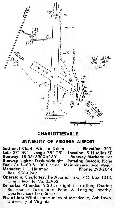 The original Culpeper Airport was depicted on the 1964 Washington Sectional Chart (courtesy of John Voss) as having a 2,300' unpaved runway.