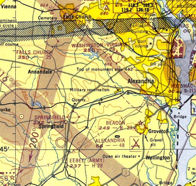 Even though it had closed the year before, Washington-VA Airport was still depicted on the 1971 Washington Sectional Chart (courtesy of Ed Francis).