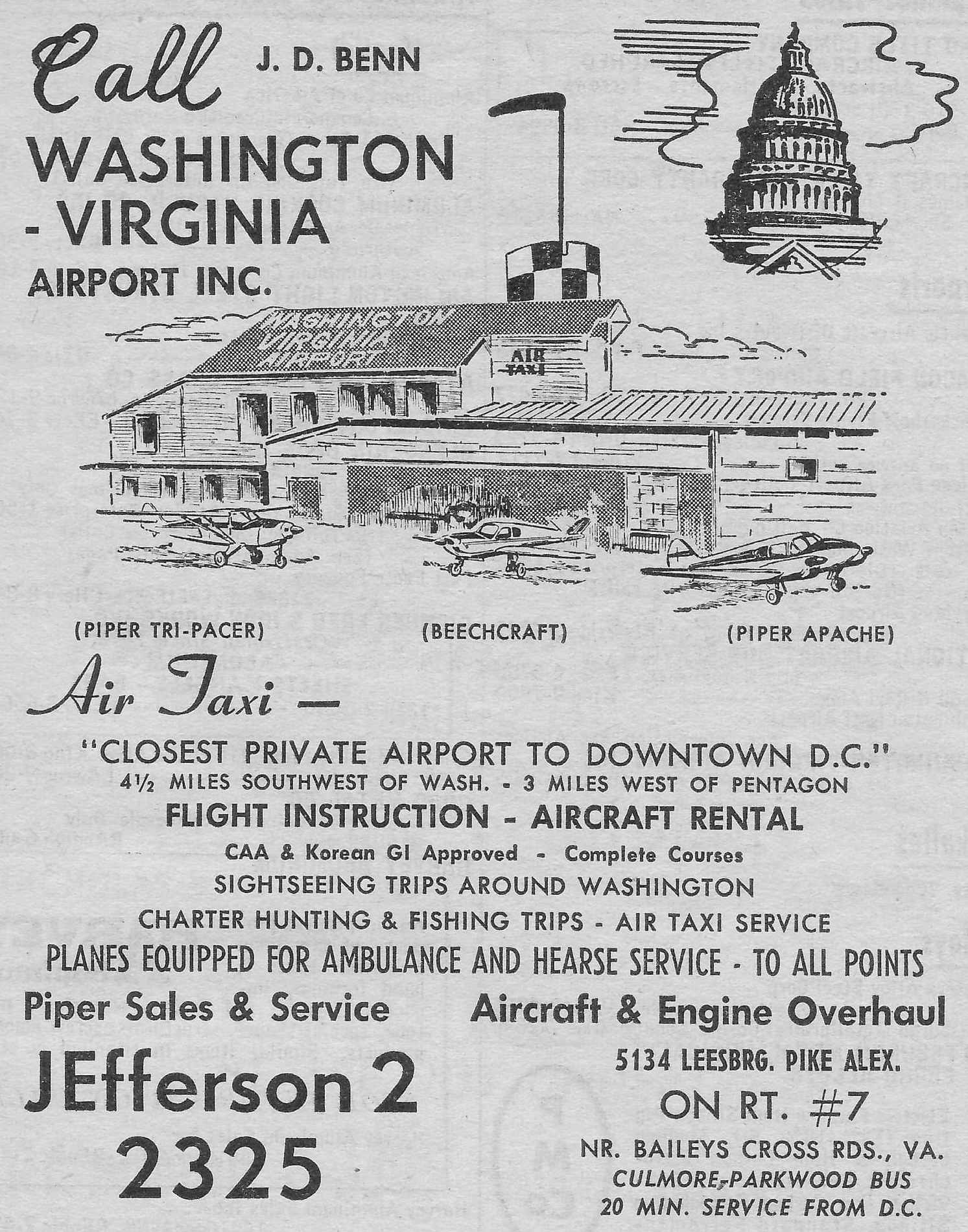 By then well over 100 aircraft were based at Washington-Virginia Airport.