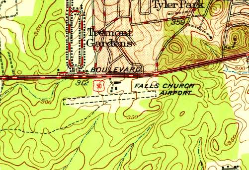 Falls Church Airpark, as depicted on the 1946 USGS topo map.