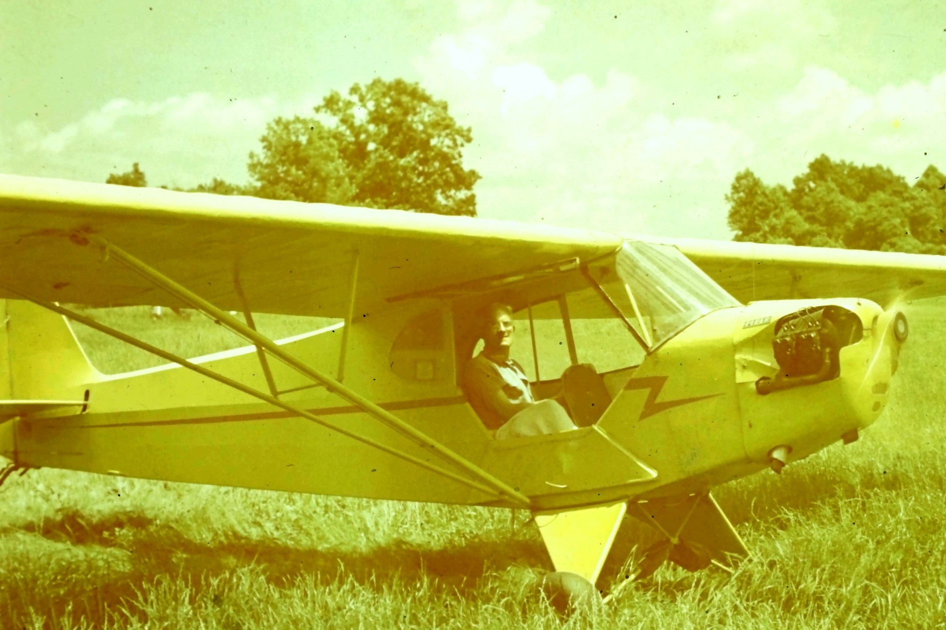 A circa 1949 photo (courtesy of Tony Beck) of Frank Beck in a Piper J3 Cub at Falls Church Airpark.