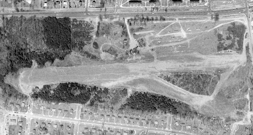 A 1946 aerial view looking southeast at Falls Church Airpark (from the Falls Church Public Library, courtesy of Derek Rowan).