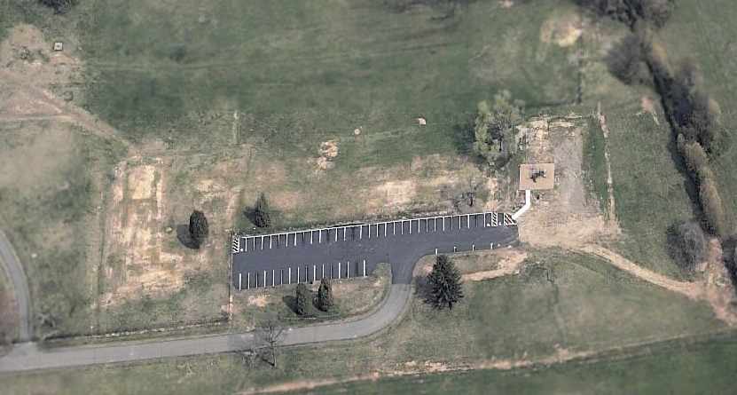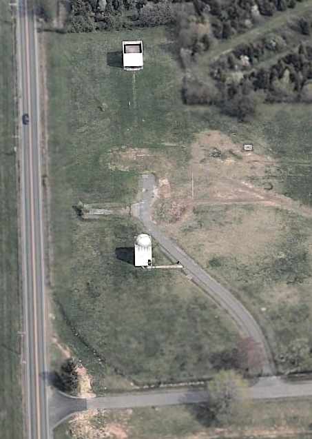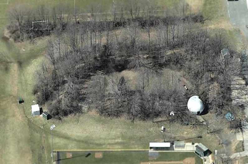 A circa 2005 aerial photo looking west at the earthen berm & radome which remains at the site of the Herndon Nike Launch Site.