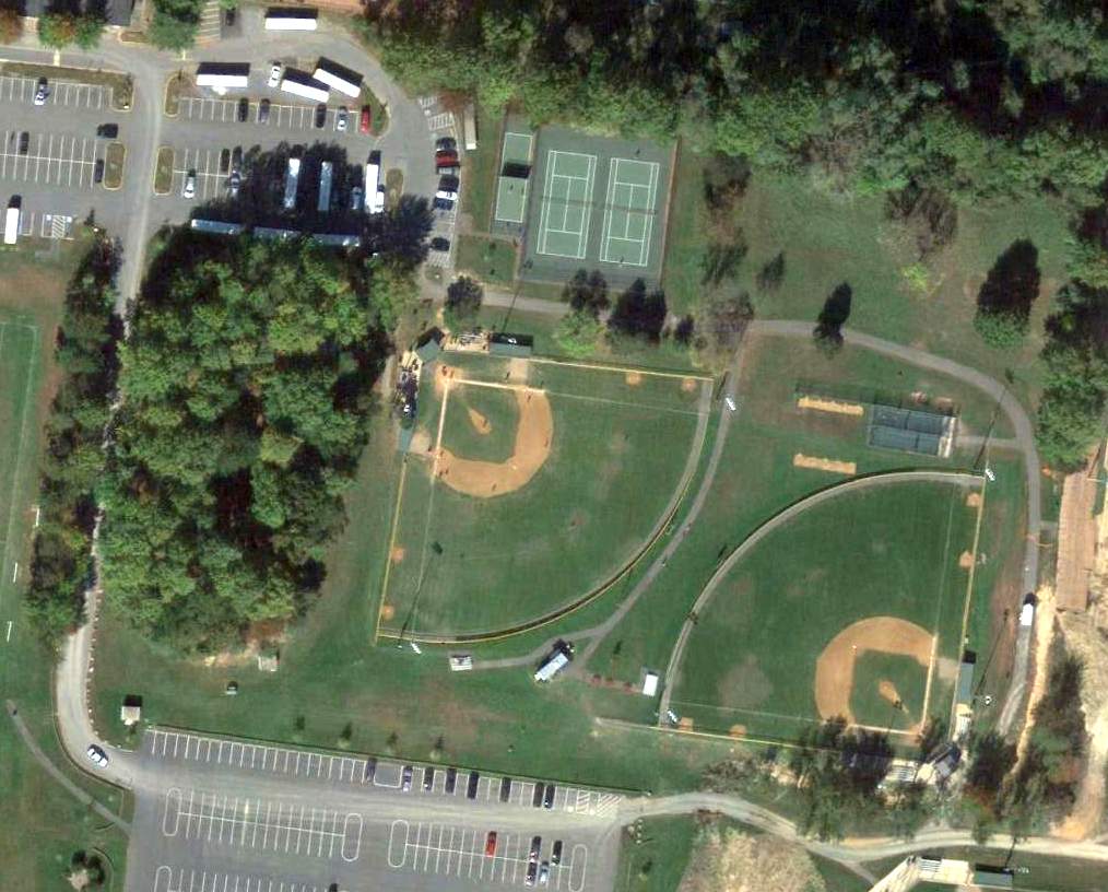 A circa 2005 aerial photo looking north at the site of the Herndon Nike IFC barracks, after their removal.