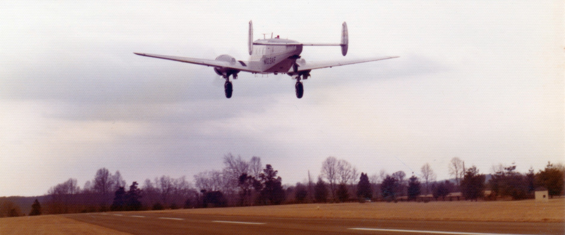 A 1975-76 photo (courtesy of Greg Wesier) of Airlie Foundation's Twin Beech Beech 18 N103AF departing Airlie Airport.