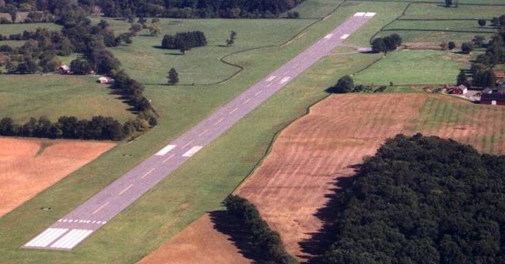 Upperville Airport is located almost immediately underneath the busy approach path to nearby Dulles Airport's Runway 12.