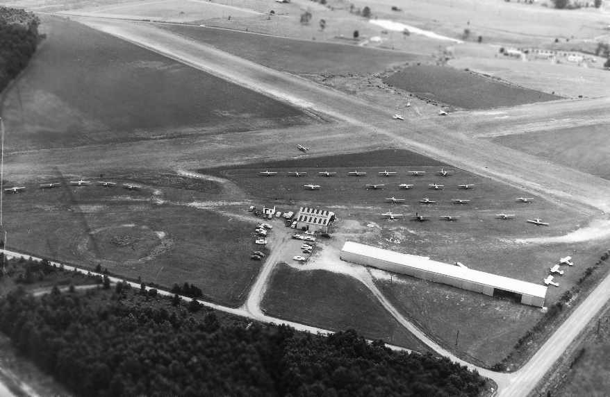 A 1964 aerial view showed a total of 10 light aircraft parked outside at the original Manassass Airport.