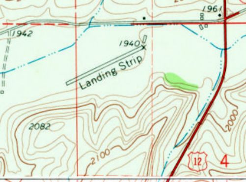 The 1981 USGS topo map still depicted the former runway, but labeled it simply "Airfield".