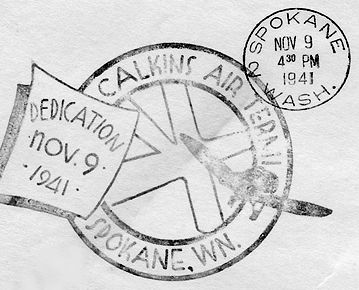 An 11/9/41 postmark commemorating the dedication of Calkins Air Terminal (courtesy of John Townsley).