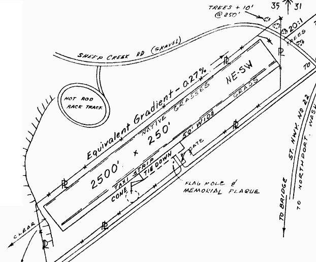 which depicted a single northeast/southwest runway, labeled simply as "Landing Strip".