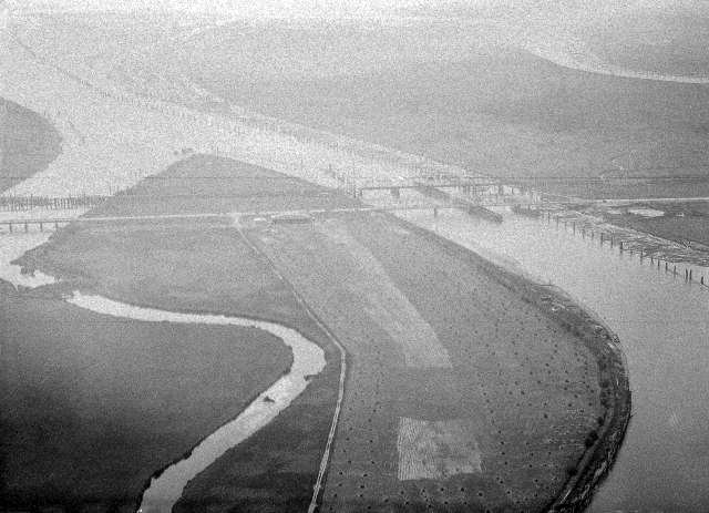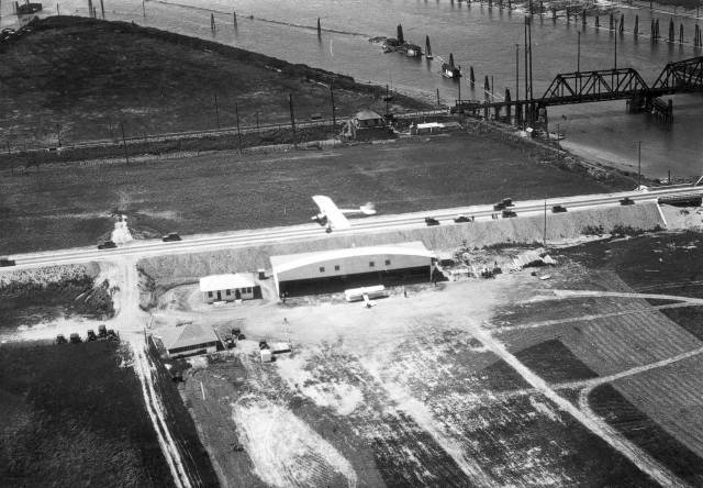 The original airport for the town of Everett was located northeast of the town, on a narrow sliver of land on Ebey Island.