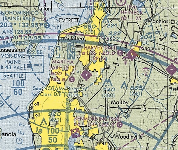 The September 1936 Bellingham Sectional Chart depicted Everett as an auxiliary airfield.