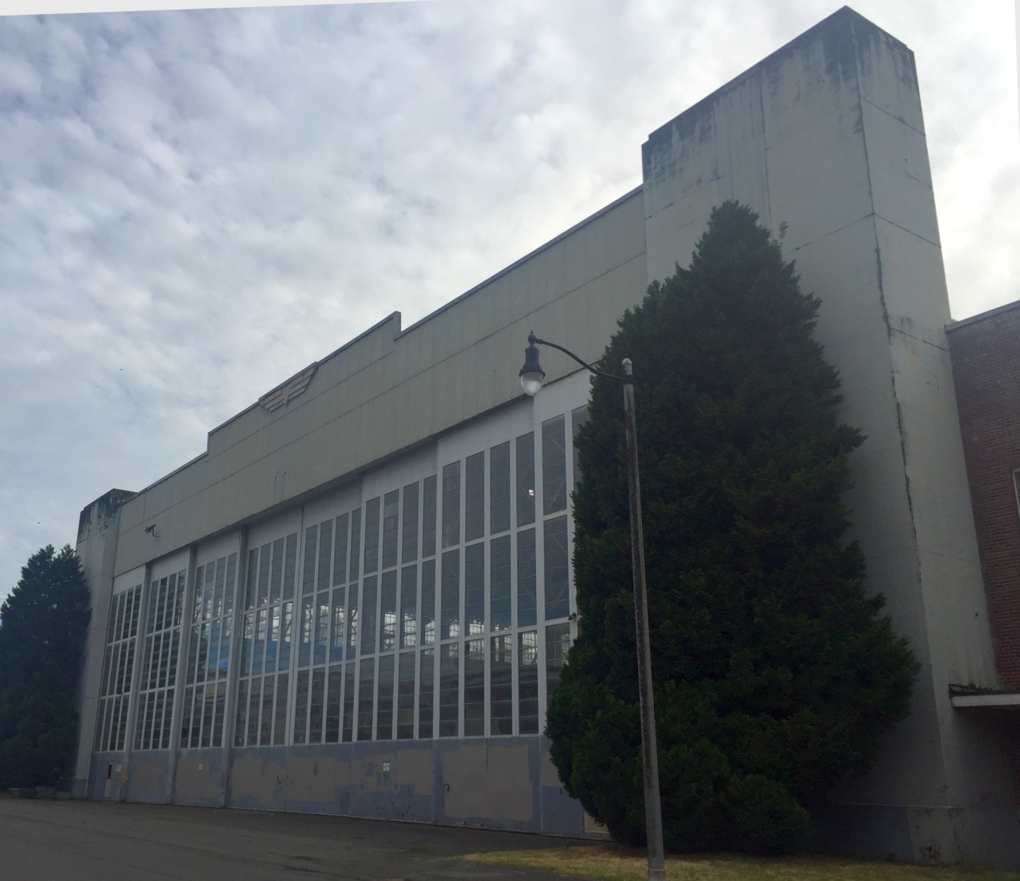 A 6/19/17 photo by Paul Freeman of the interior of a former Sand Point hangar.