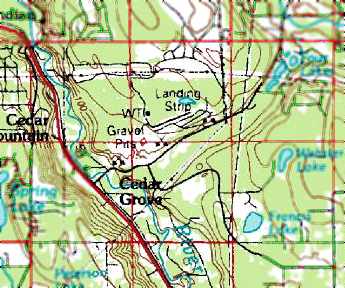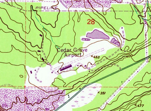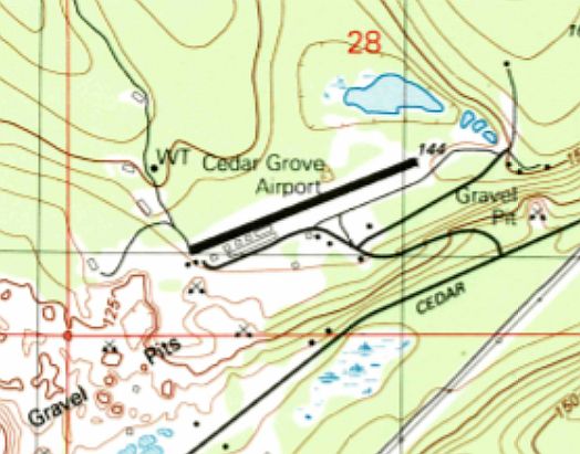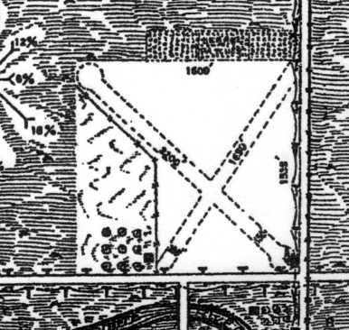 It depicted a single east/west unpaved runway, with a few small buildings on the south side.