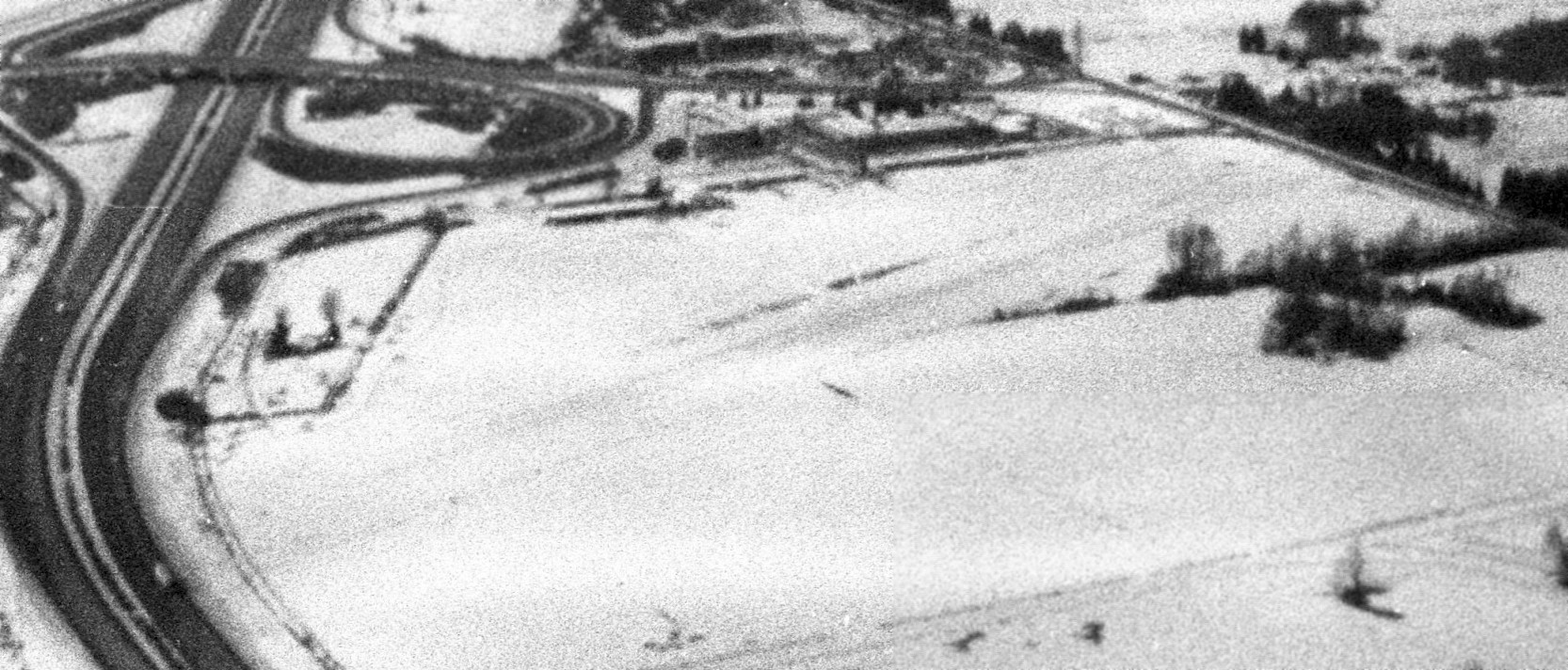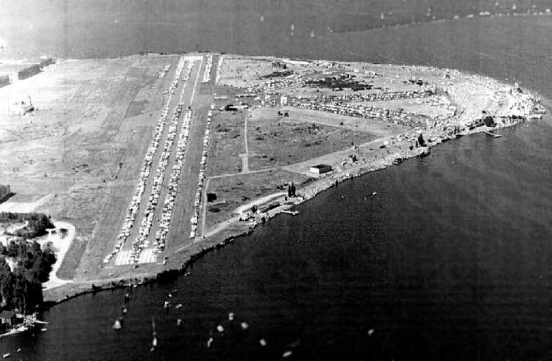An August 1974 aerial view looking north at the abandoned runways during the Gold Cup Hydroplane Race.