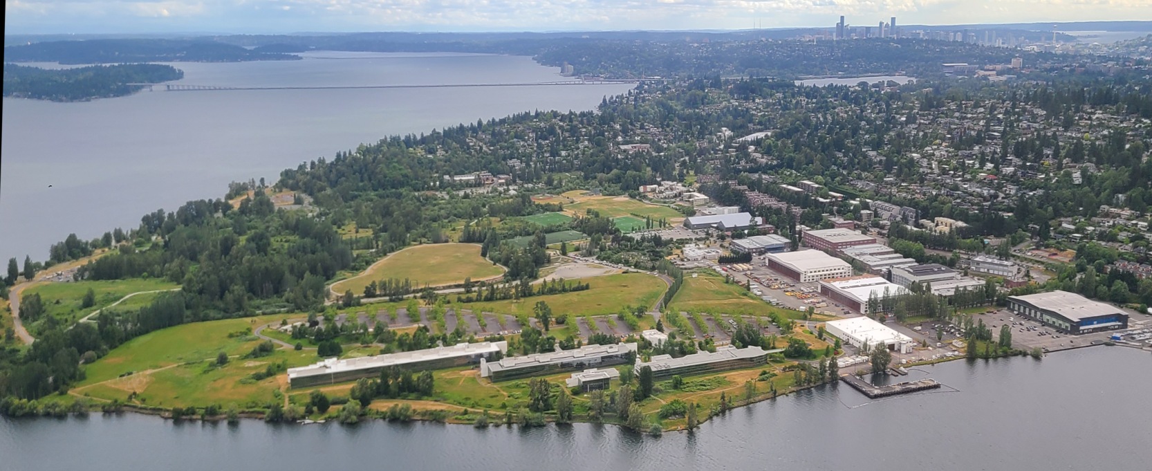 A 6/5/21 aerial view looking southwest at the site of Sand Point NAS by Tim Nelson, author of Jet City Rewind.