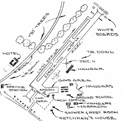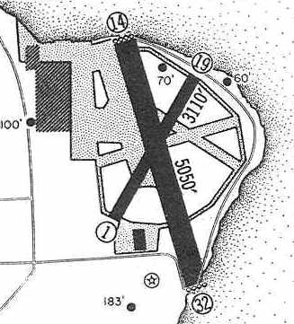 However, a note said "Runway 19 landing light aircraft only." Buildings (hangars?) were depicted on the west & southwest sides of the airfield.