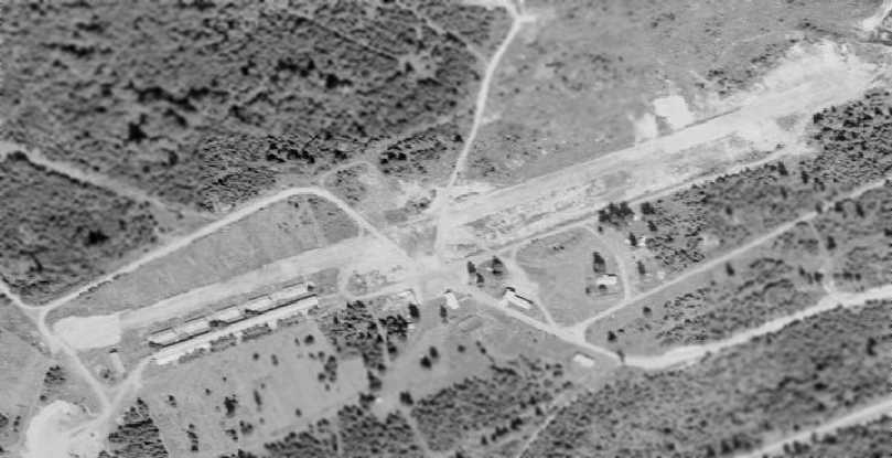 which depicted it as having a single north/south unpaved runway & 6 light single-engine aircraft were parked on its west side.