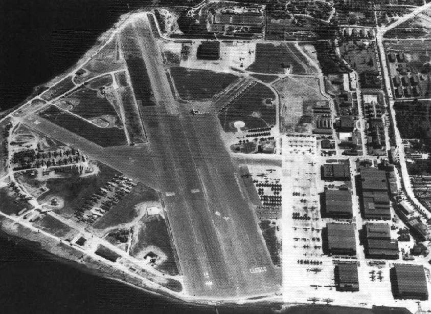 which depicted an east/west grass runway on the north side of the island & a hangar on the west end.