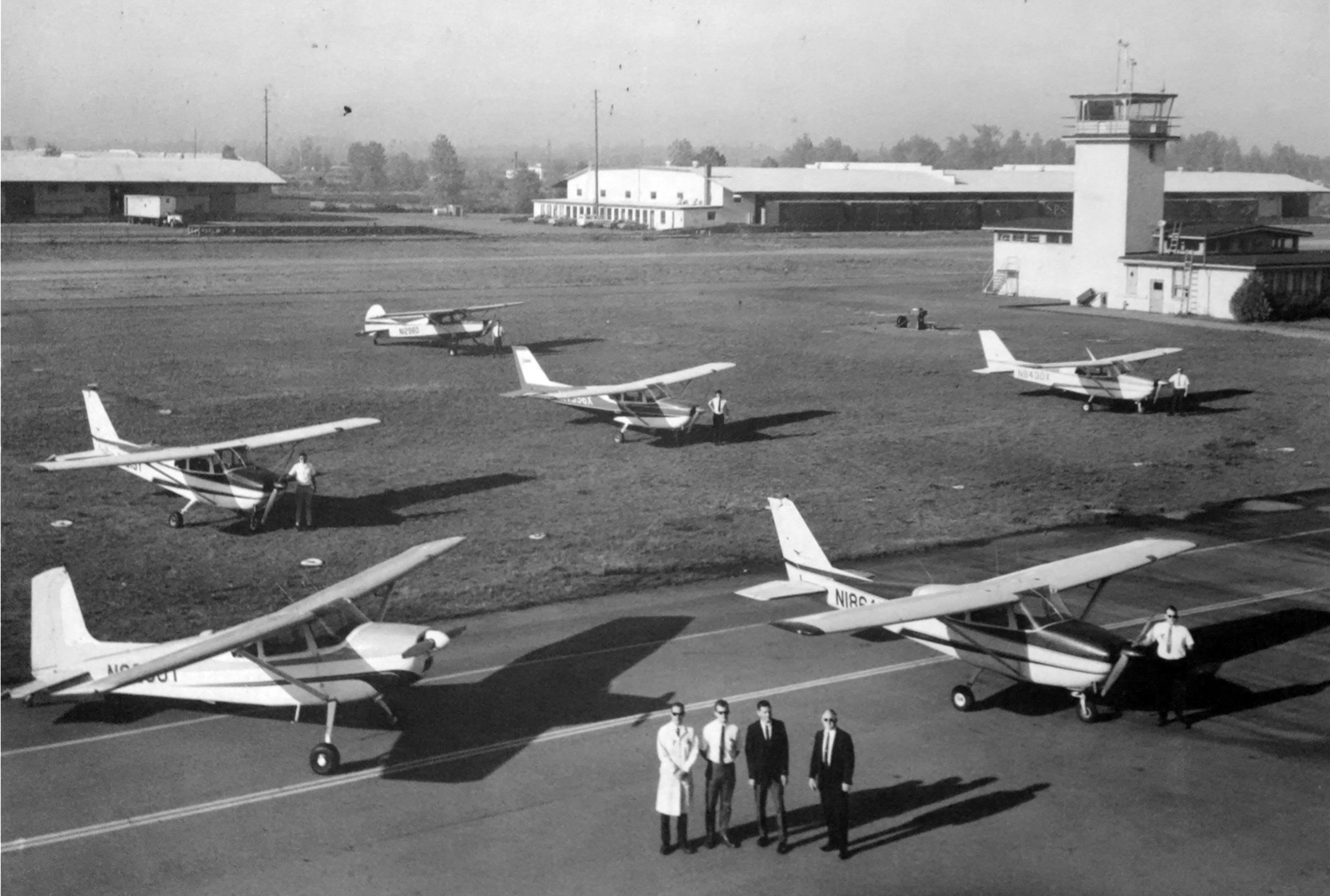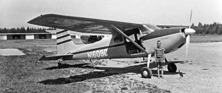 A 1960 photo of Charles Batchelor & a Cessna 180 at the South Tacoma Airport.