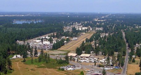 A circa 2013 aerial view by Anthony Tessitore looking northwest at Spanaway Airport.