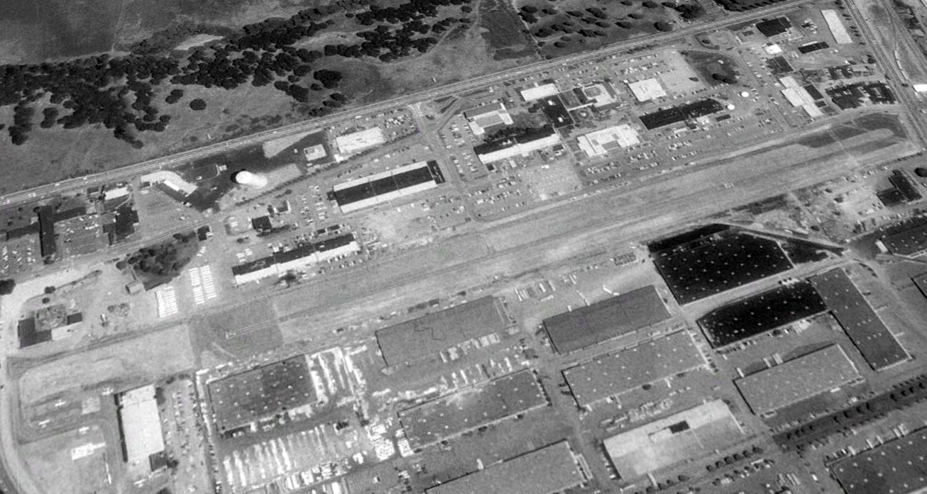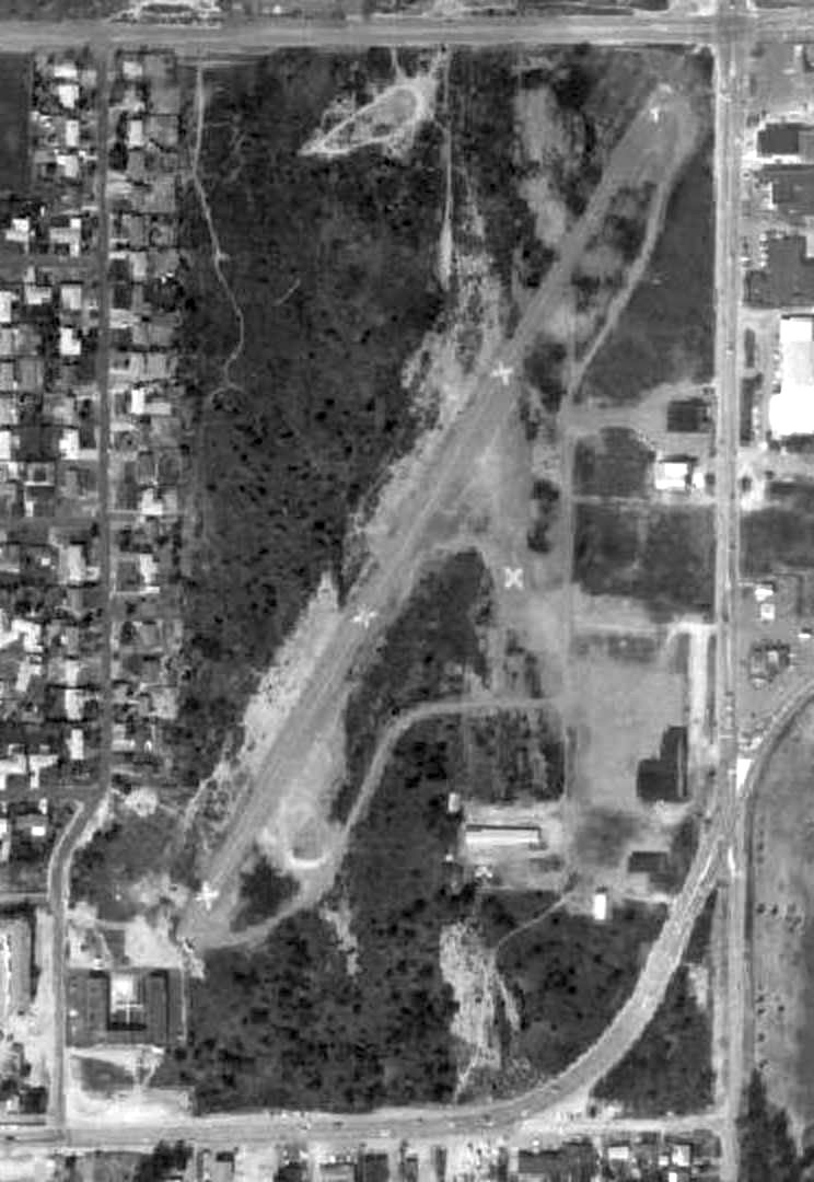 A 1968 aerial view showed North Frontage Road had been constructed over the runway alignment,