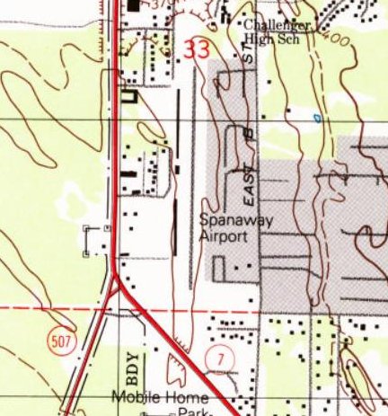 The 1997 USGS topo map depicted Spanaway Airport as having a north/south paved runway.