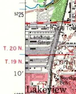 A 1954 street map (courtesy of Kevin Walsh) depicted “Tacoma Airpark” as a north/south-oriented rectangular property outline.