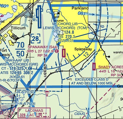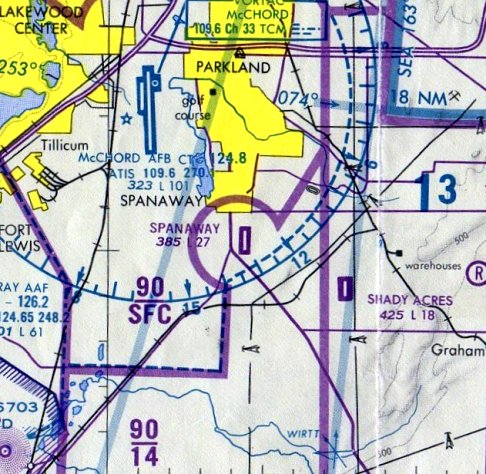 The last aeronautical chart depiction which has been located of Spanaway Airport was on the May 2018 Seattle Terminal Aeronautical Chart.