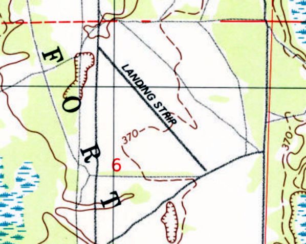 It depicted Barry's as having a single east/west unpaved runway, with a parking area & a few small buildings (one with “Barry's” painted on its roof) on the southeast side.