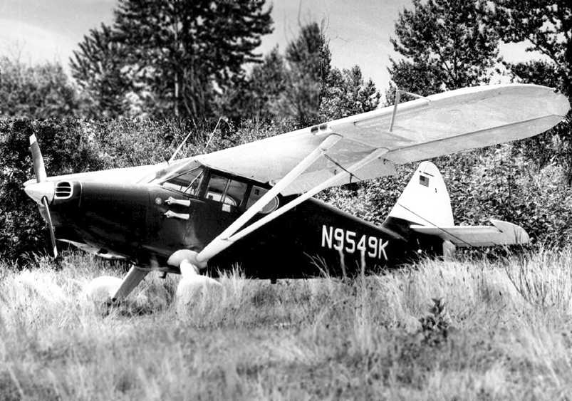 flies his ski-equipped Piper J-3 Cub from Spanaway Air Strip to the top of Mount Rainier (14,410'),