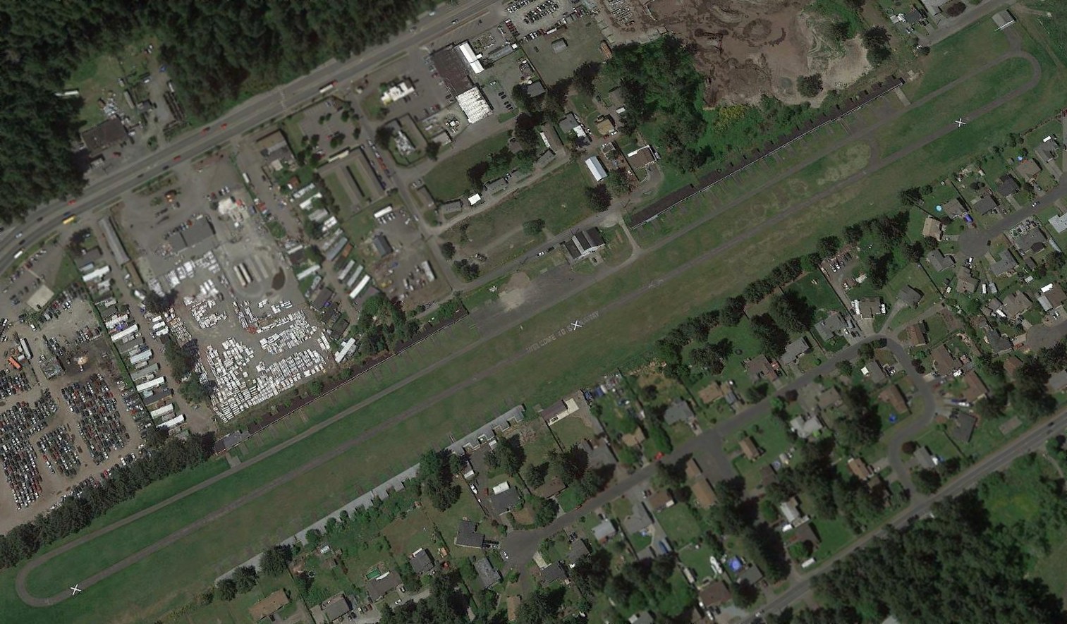 The last photo which has been located showing an aircraft at Spanaway Airport was a 2015 aerial view looking northwest.