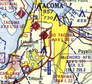 Tacoma Airport was not depicted at all on the 1974 USGS topo map or on the July 1974 Seattle Terminal Chart.