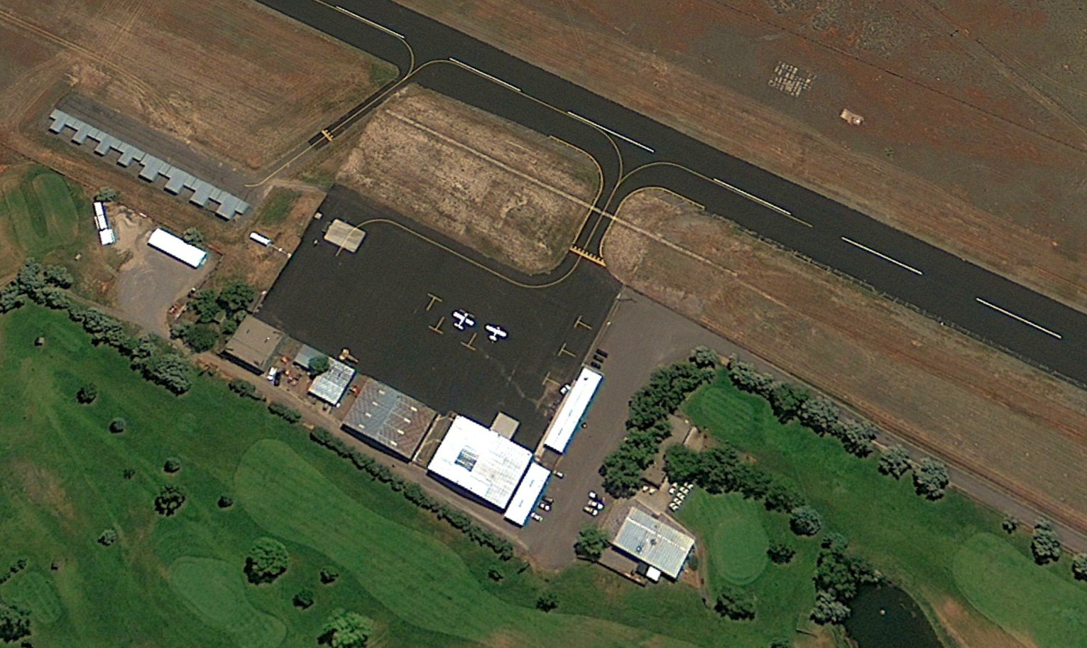 The last photo which has been located showing aircraft at the original Hot Springs County Thermopolis Airport was a 2010 aerial view looking east, which showed 2 light single-engine planes on the ramp.