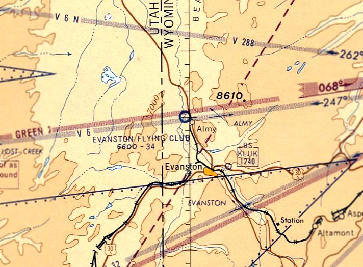 The last aeronautical chart depiction which has been located of Wamsutter Airport was on the April 1950 Cheyenne Sectional Chart.