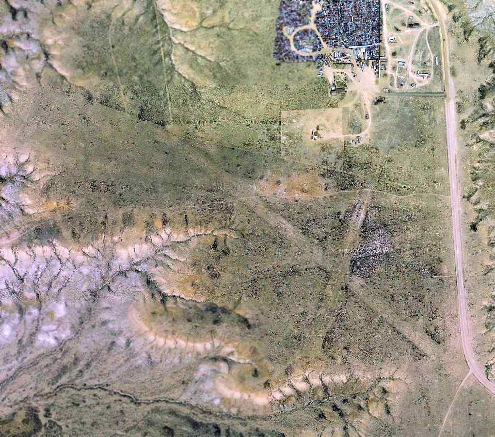 The earliest photo which has been located of Thermopolis Airport was a 1994 aerial view looking east.