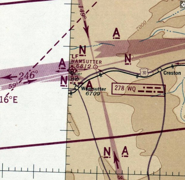 It depicted Wamsutter as a commercial/municipal airport, and having Commerce Department Airway Beacon #22.