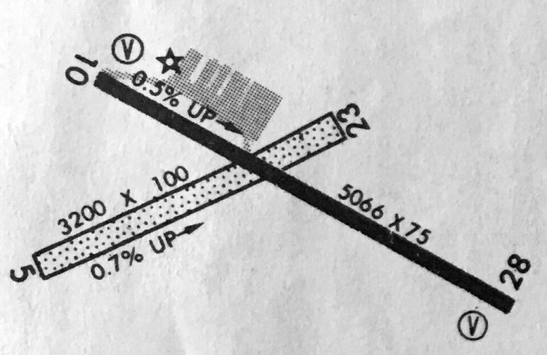 Curiously however, the original runway continued to be listed along with the new longer runway, despite it being just one compass heading difference from the newer, longer one.”